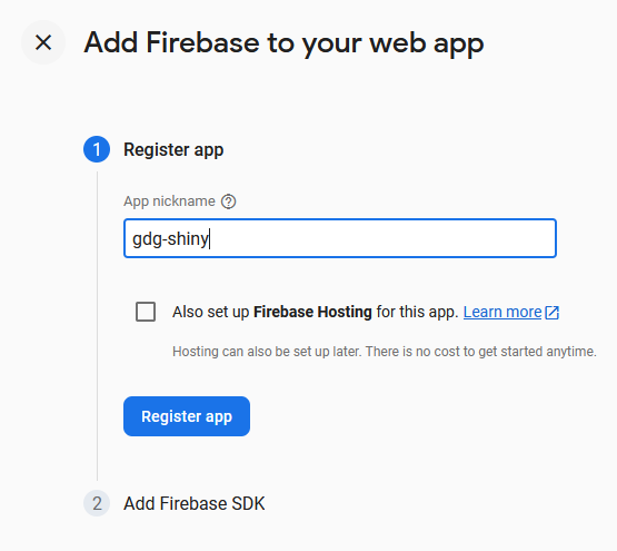 # Form inputs in one listform_inputs <-reactive({list(sex = input$sex,age = input$age,career = input$career,rating = input$rating )})# Send data to firestore when 'Submit' is clickedobserveEvent( input$form_submit, {## Convert data to json structure form_data_list <-toJSON(list(fields =list(uid =list("stringValue"=email()),Sex =list("integerValue"=form_inputs()[["sex"]]),Age =list("integerValue"=form_inputs()[["age"]]),Career =list("integerValue"=form_inputs()[["career"]]),Rating =list("integerValue"=form_inputs()[["rating"]]) ) ), auto_unbox =TRUE)## writing data endpoint_quiz <-"projects/gdg-demo-b8928/databases/(default)/documents/Quiz" write.db <-function(db_endpoint, data, auth_token) { r <- httr::POST(sprintf("https://firestore.googleapis.com/v1beta1/%s", db_endpoint), httr::add_headers("Content-Type"="application/json","Authorization"=paste("Bearer", auth_token) ),body = data )return(r)} write_request_quiz <-write.db(db_endpoint =paste0(endpoint_quiz, "?documentId=", email()),data = form_data_list,auth_token =accessToken() ) })